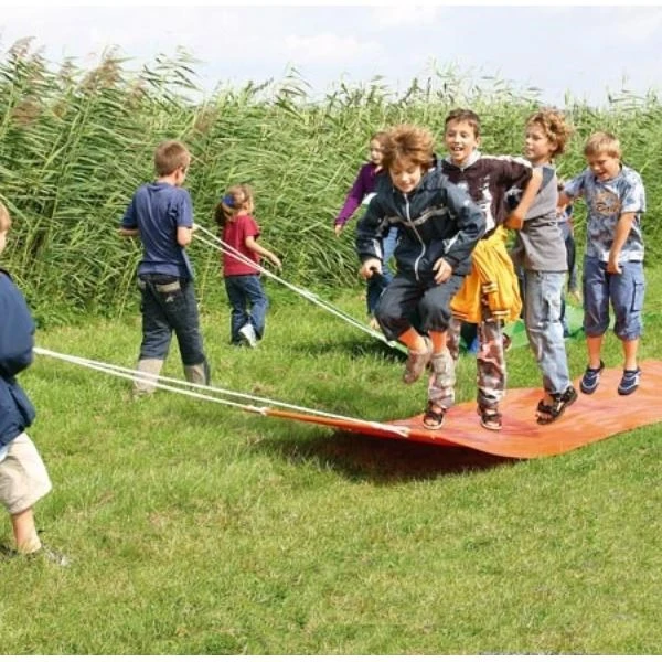 Samenspel is vereist om het tapijt te laten vliegen. Maximaal 2 personen trekken het tapijt en de rest van het team gaat op het tapijt staan. Pas wanneer iedereen tegelijk springt kan het Vliegend Tapijt naar voren getrokken worden. Timing is dus belangrijk! Dit spel is natuurlijk nog spannender wanneer 2 teams tegen elkaar spelen. Haal jij de finsch als eerste?