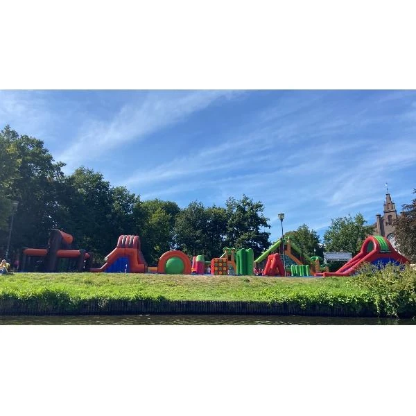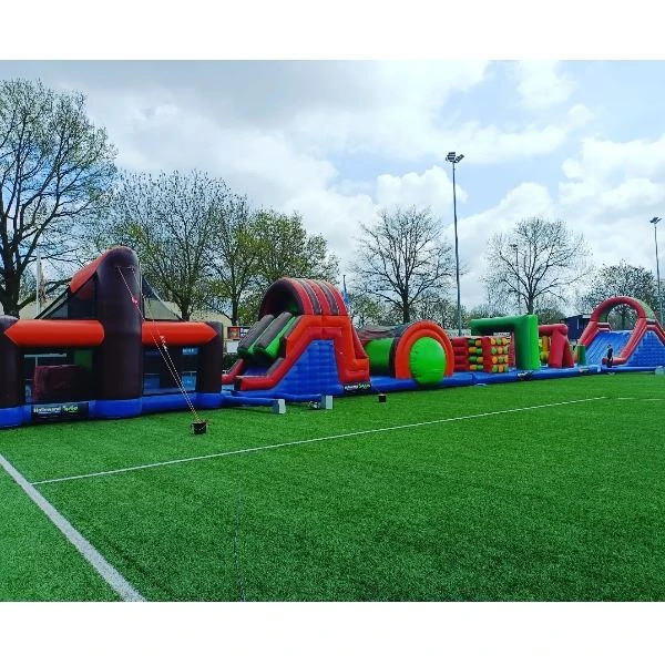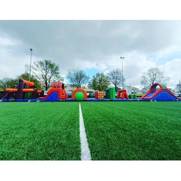 - Indien het stormbaan op een harde ondergrond staat, ben je verplicht valmatten erbij te huren.
