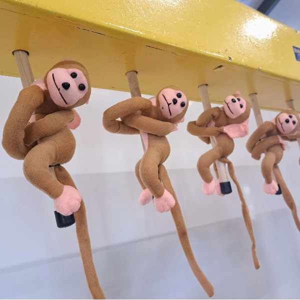 Een spel huren in jungle of tropisch thema? Huur stokvangen aap! Vang op tijd de aapjes die naar beneden vallen! 1 persoon gaat onder de stokken staan en de ander persoon trekt omstebeurte aan de touwtjes. Stokvangen blijft een leuk spel voor jong en oud.