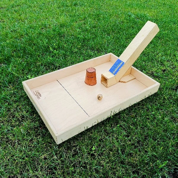 Een uitdagend oud Hollands spel huren? Huur het kat en muis spel. Pak het bekertje en bereid je voor om de bal zo snel mogelijk te vangen!