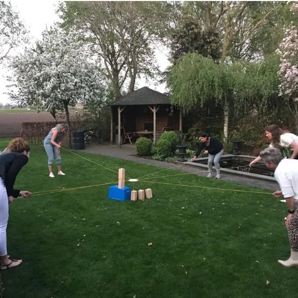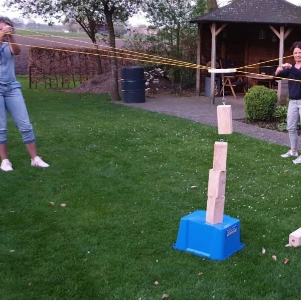 Dit behendigheidsspel is te spelen met 2 tot 6 personen. Pak de blokken 1 voor 1 op met behulp van de touwen. Kunnen jullie goed samenwerken? Om het nog spannender te maken kun je 2 blok stapel sets huren om zo tegen elkaar te strijden.