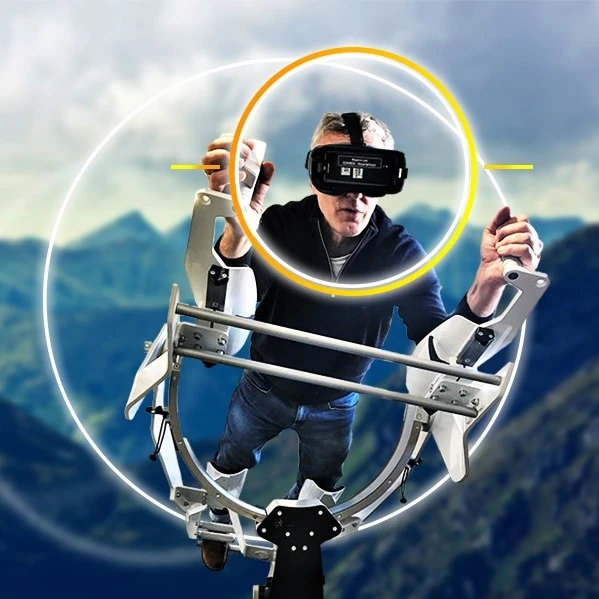 Onze vliegsimulator laat jou ervaren hoe het is om met een jet wing rond te vliegen in virtual reality. De simulator bestaat uit een constructie die je met jouw evenwicht kunt besturen in 3 dimensies. De bedieningscontroller bestuur je met je hand en geeft mogelijkheid tot accelereren en remmen.