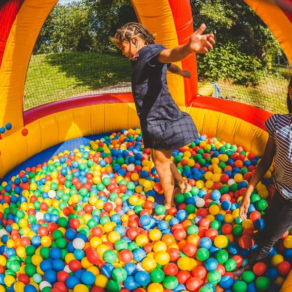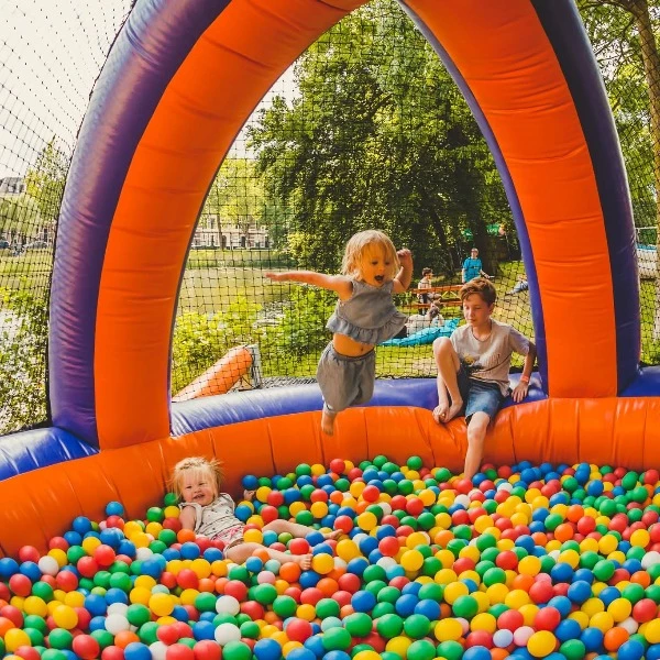 - Indien het ballenbad op een harde ondergrond staat, ben je verplicht valmatten erbij te huren.