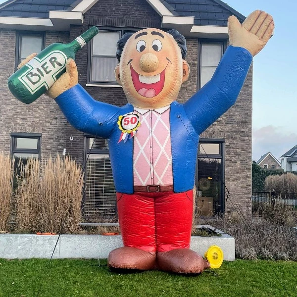 Bij het bereiken van deze respectabele leeftijd heb je de mogelijkheid om jouw collega, vriend of partner eens goed in het zonnetje te zetten! Deze 4 meter hoge opblaasbare Abraham feestpop is niet te missen in de voortuin.