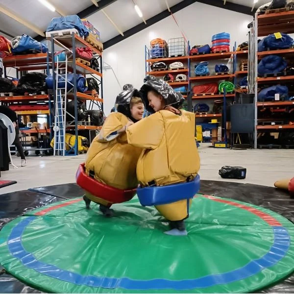 Ga de strijd aan! Kinder sumo worstelen is helemaal in. De pakken zijn van schuim. Deze pakken kun je gemakkelijk over het hoofd van de kinderen trekken. Het advies is om het spel te spelen op een zachte ondergrond. Een kinder sumopak is 90cm lang.