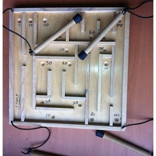 Leg de knikker bij de start. Rol de knikker zo ver mogelijk door het doolhof en probeer zoveel mogelijjk punten te behalen! Lukt het jullie om de finish te halen? Goed voor teambuilding tijdens een zeskamp! Geschikt voor 2 of 4 personen.