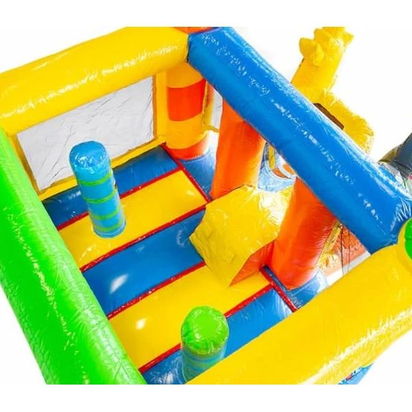 Een vrolijk springkussen huren? Huur het springkussen party, met glijbaan! Dit compacte kussen past in vrijwel iedere achtertuin of oprit. De wanden en handig geplaatste netten zorgen voor extra veiligheid en ruimte voor toezicht. Het springkussen is geschikt voor kinderen tot ongeveer 8 jaar.