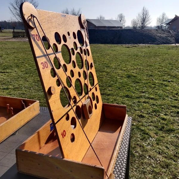 Een leuk spel huren voor jong & oud? Het gatenkaasspel is misschien wel het populairste Oudhollandse spel om te huren. Trek op het juiste moment aan het juiste koordje en beweeg de knikker naar zoveel mogelijk punten.