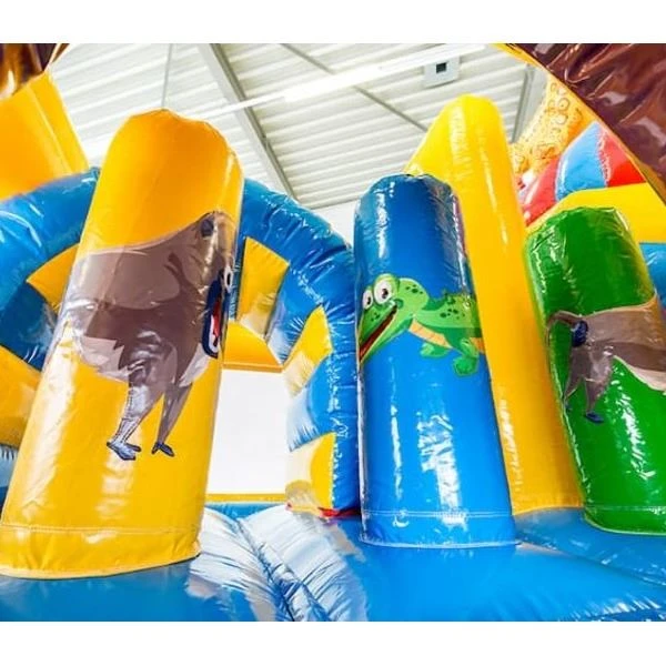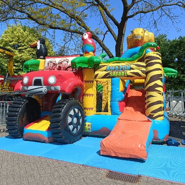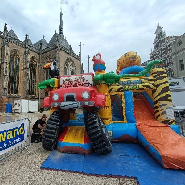 Een springkussen huren in dieren thema? Huur het springkussen multiplay safari! Dit springkussen heeft veel speelmogelijkheden met leuke opstakels en een glijbaan. Met het huren van dit springkussen, haal je een echte blikvanger naar jouw feest.