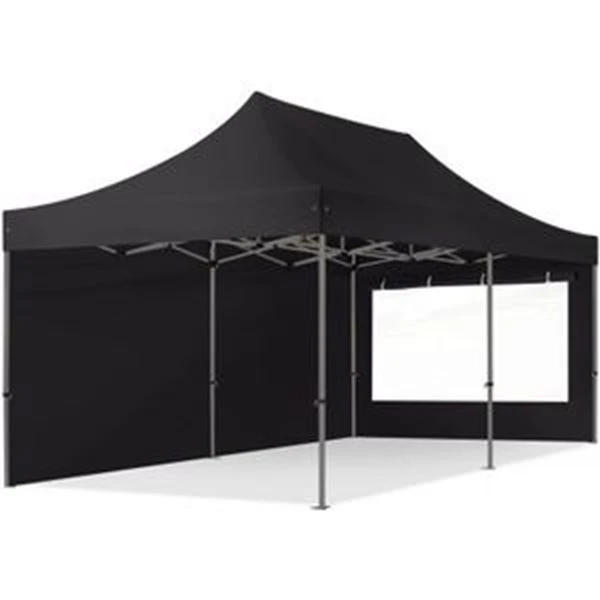 Geen geknooi met losse buizen maar in een handomdraai staat deze makkelijk op te zetten tent op uw feestje. Deze tent is geschikt voor ongeveer 30 personen en 4 a 5 statafels. Door zijn compacte formaat, is de tent ingevouwen makkelijk vervoerbaar.