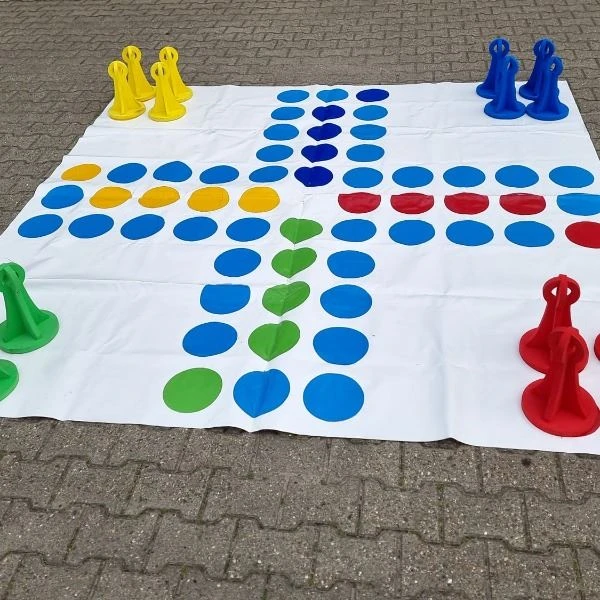 Mens erger je niet, iedereen kent het wel, maar zo groot zie je ze niet snel! Mens erger je niet speel je met 2 tot 4 spelers, waarbij elke speler een set van 4 pionnen in dezelfde kleur krijgt. Bij de start van het spel plaatsen alle spelers de pionnen op de vier vakken van dezelfde kleur aan de rand van het speelbord.