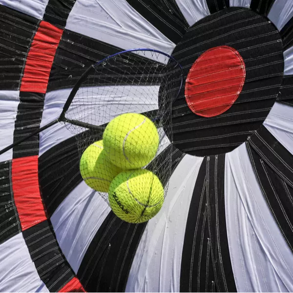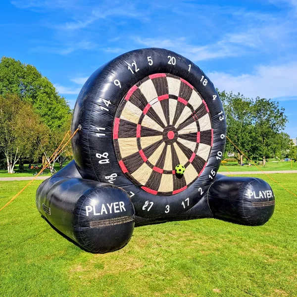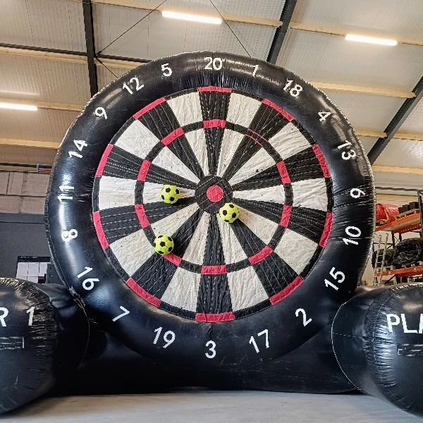 Een uitdagende voetbal attractie huren? Huur dan de populaire opblaasbare voetbaldart! Schiet met 3 klittenband ballen een zo hoog mogelijk score op de voetbaldart. Dit kan door middel van de 501-regels zoals bij de echte dart, maar ook met eigen spelregels.