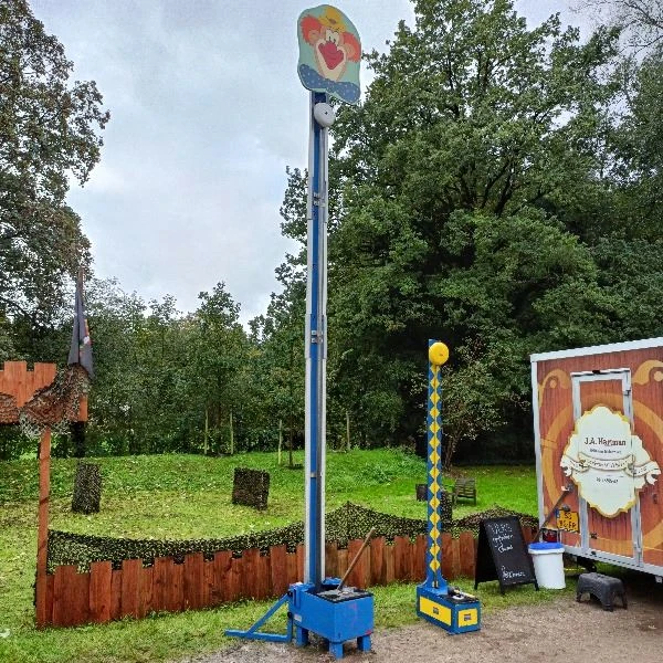 Maak je evenement een groot succes met de klassieke attractie: de Kop van Jut! Dit spannende spel is perfect voor feesten, festivals en bedrijfsuitjes. Met de Kop van Jut kunnen deelnemers hun kracht testen en plezier beleven terwijl ze proberen de bel te raken. Het biedt een competitieve sfeer die mensen aanmoedigt om elkaar uit te dagen en samen te lachen.