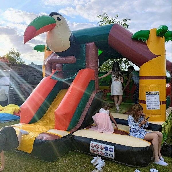 Een springkussen huren in jungle thema? Huur springkussen amazone, met glijbaan! Het huren van dit springkussen past helemaal bij een feestje jungle of dieren thema. Met het huren van dit springkussen met glijbaan, is het feestje helemaal af..