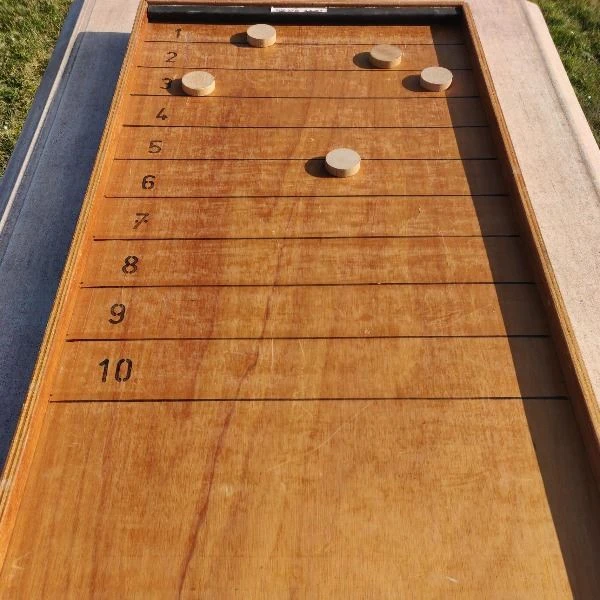 Sjoelen blijft een leuk volksspel om te huren, Sjoelsteen schuiven is een leuke variant op het gewone sjoelen. De puntentelling begint op de terugweg. Ga de competitie aan en schuif de 5 sjoelschijven via de stootrand naar het vak met de meeste punten!