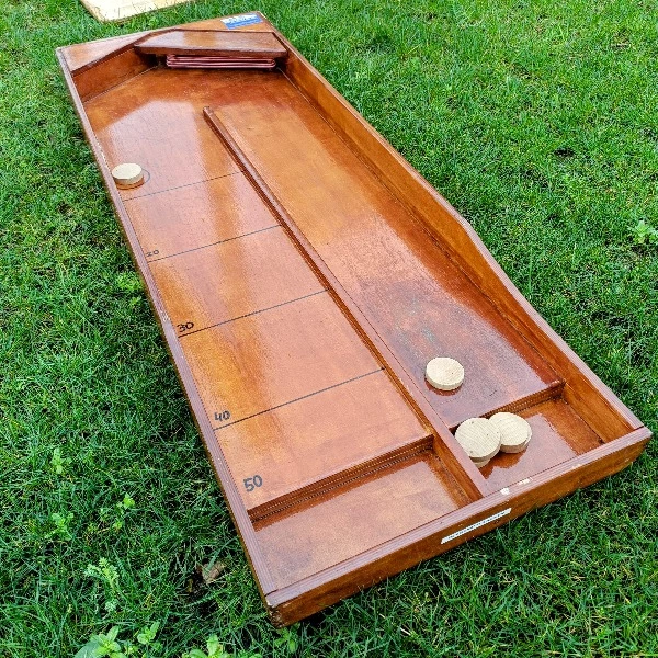 Een leuke variant op sjoelen! Met 6 sjoelschijven probeer je de gekleurde sjoelschijf in een puntenvak te spelen.