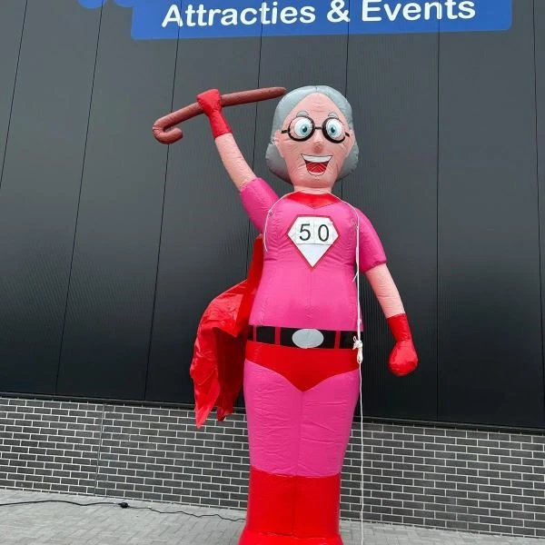 De 50e verjaardag van een vriendin of collega niet zomaar voorbij laten gaan? Huur een opblaasbare Sarah pop! Deze 4 meter hoge Sarah pop is namelijk niet te missen in de voortuin.
