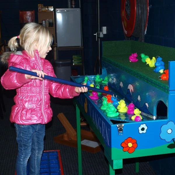 Het bekende kermis spel: eendjes vangen! Het spel heeft een grote aantrekkingskracht op zowel jonge kinderen als oude kinderen. Door de waterpomp zwemmen de eendjes ook echt rond.