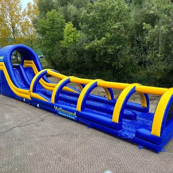 De rodelbaan is een heerlijk verfrissende attractie om te huren, met een enorm lang glijgedeelte. Klim aan de achterzijde met een touwladder omhoog en geniet van de superlange glijbaan. Een leuke waterattractie om te huren bij bijvoorbeeld een zeskamp. Maar het is natuurlijk ook geweldig om gewoon op warme zomerdagen van af te glijden! In dit kussen kan een waterslang worden geplaatst om de baan nat te houden.
