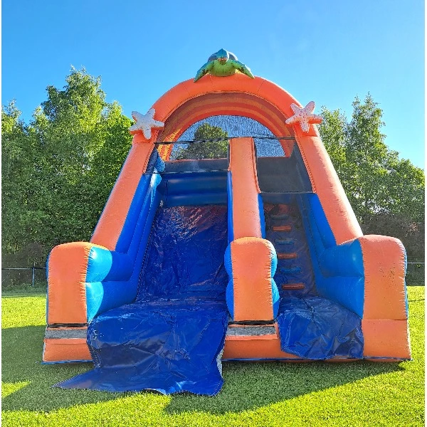 Een super gave opblaasbare glijbaan in thema beach! Het kussen is vormgegeven in opvallende kleuren. Met het huren van deze 6 meter hoge glijbaan haal je een echte eyecatcher naar jouw evenement. Het luchtkussen is geschikt voor zowel kinderen, als volwassenen.