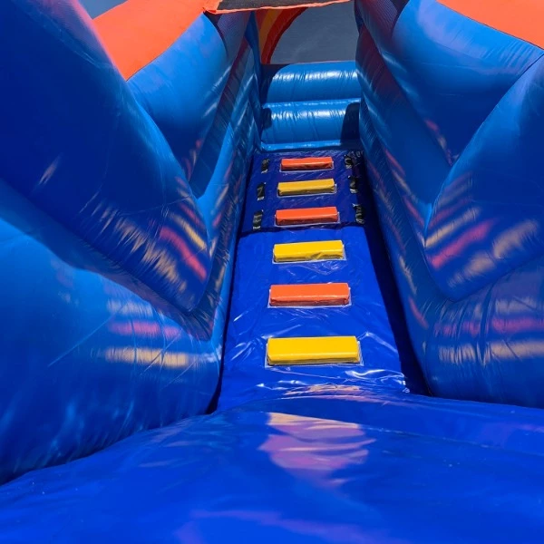 - Indien de glijbaan op een harde ondergrond staat, ben je verplicht valmatten erbij te huren.
