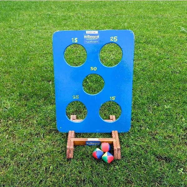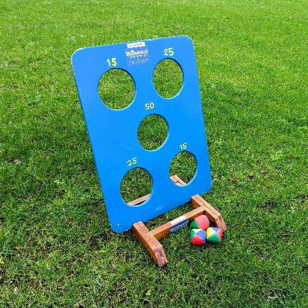 Gooi 3 ballen door de puntengaten van het bord en kijk hoeveel punten jij kan behalen. Een simpel spel en daardoor juist populair in onze spellen verhuur.
