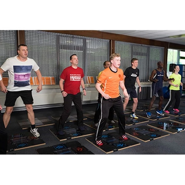 - 8 draadloze dance pads met accu (aangeleverd in flightcase)