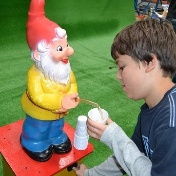 Deze ranja kabouter schenkt limonade bij het drukken op de knop. Erg leuk voor kinderen om zelf hun drinken in te schenken.