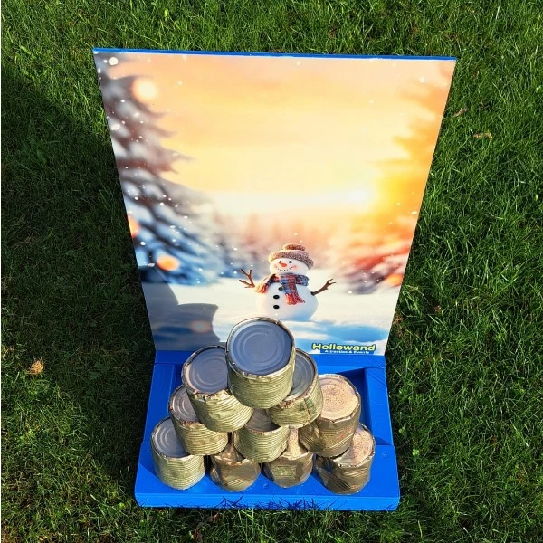 Het oud Hollandse spel blikgooien maar dan helemaal in winterse sferen. Gooi met 3 sneeuwballen, zoveel mogelijk blikken omver. Blijft leuk, voor jong en oud! Ideaal voor een kerstmarkt, winterfair of als actief spel tijdens een winterfeest. Combineer het met warme chocolademelk en sneeuwpret voor een gezellige winteractiviteit. Blikgooien in de winter brengt beweging, competitie en veel lol – zelfs bij koude temperaturen!