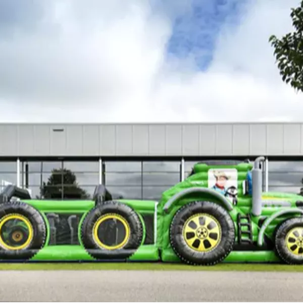 Ben je op zoek naar een unieke en spannende stormbaan van 17 meter? Met een stormbaan trekker zorg je gegarandeerd voor actie, competitie en plezier! Deze opvallende stormbaan, uitgevoerd in stoer trekker-thema, is perfect voor de echte trekker liefhebber. Een stormbaan trekker is een opblaasbare hindernisbaan in de vorm van een tractor. Deelnemers leggen zo snel mogelijk een parcours af vol obstakels zoals tunnels, klimwanden en glijbanen.