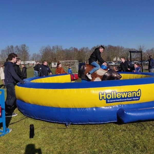 Een spectaculaire attractie huren voor jouw evenement? Huur een rodeostier! De rodeostier welke wij in onze verhuur hebben is volkomen veilig en een geschikte attractie voor zowel kinderen als volwassenen. De rodeostier is vol-automatisch en dus zeer eenvoudig door een volwassen persoon te bedienen. De rodeostier is in te stellen in diverse snelheden, waardoor de attractie veilig én een geschikte attractie voor kleine kinderen is. Deze mechanische rodeostier wordt jaarlijks onderheven aan de veiligheidseisen.