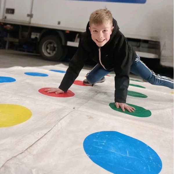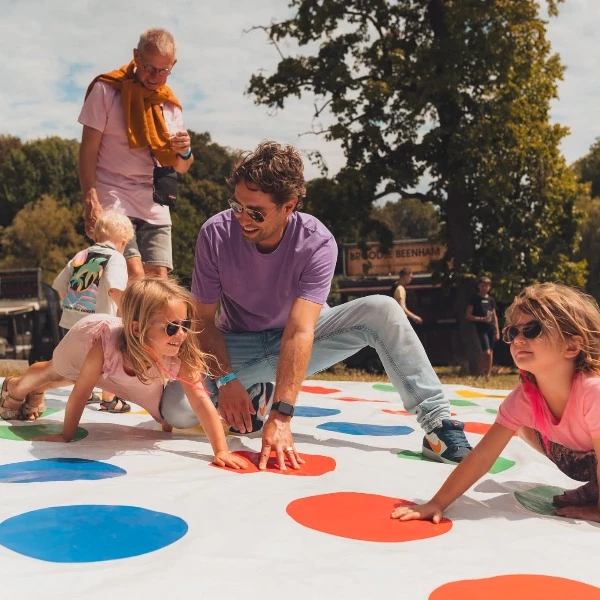 Twister is een origineel gezelschapsspel voor binnen en buiten, voor jong en oud. Of je nu op het twisterkleed staat of scheidsrechter bent; iedereen heeft plezier! Doe mee met de gekke worsteling om je handen en voeten op de beste plaats te krijgen. Met dit XL twisterspel kunnen 2 tot 16 personen tegelijktijd spelen.